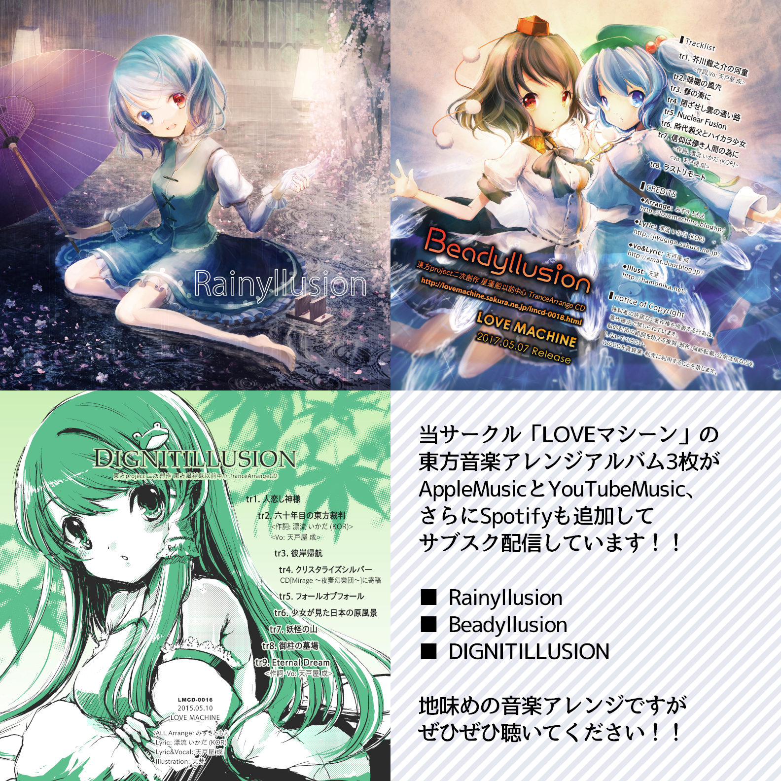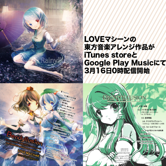 当サークル「LOVEマシーン」の東方音楽アレンジアルバム3作品が、